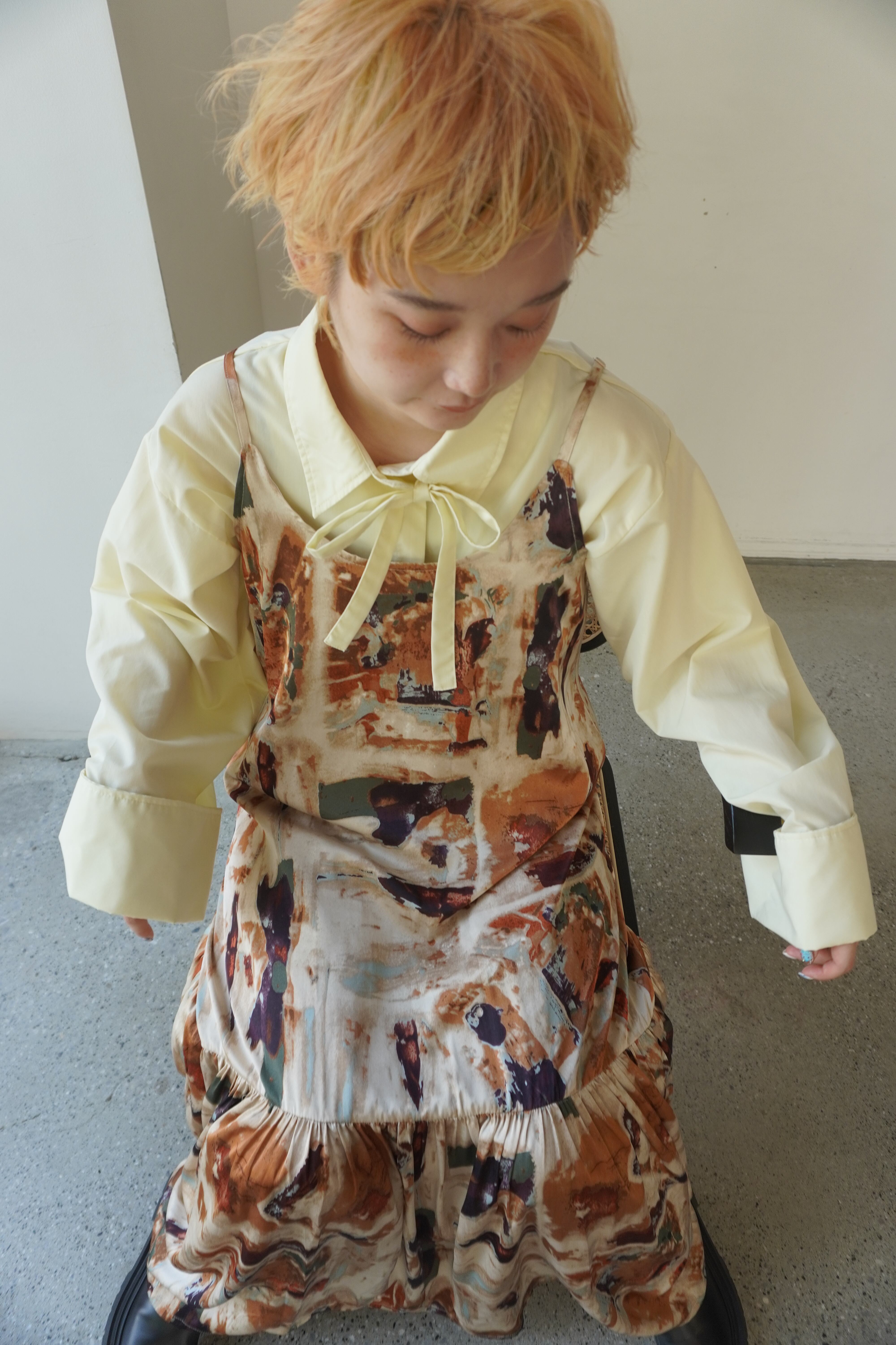 モードな雰囲気を演出するニュアンス柄ワンピースです。