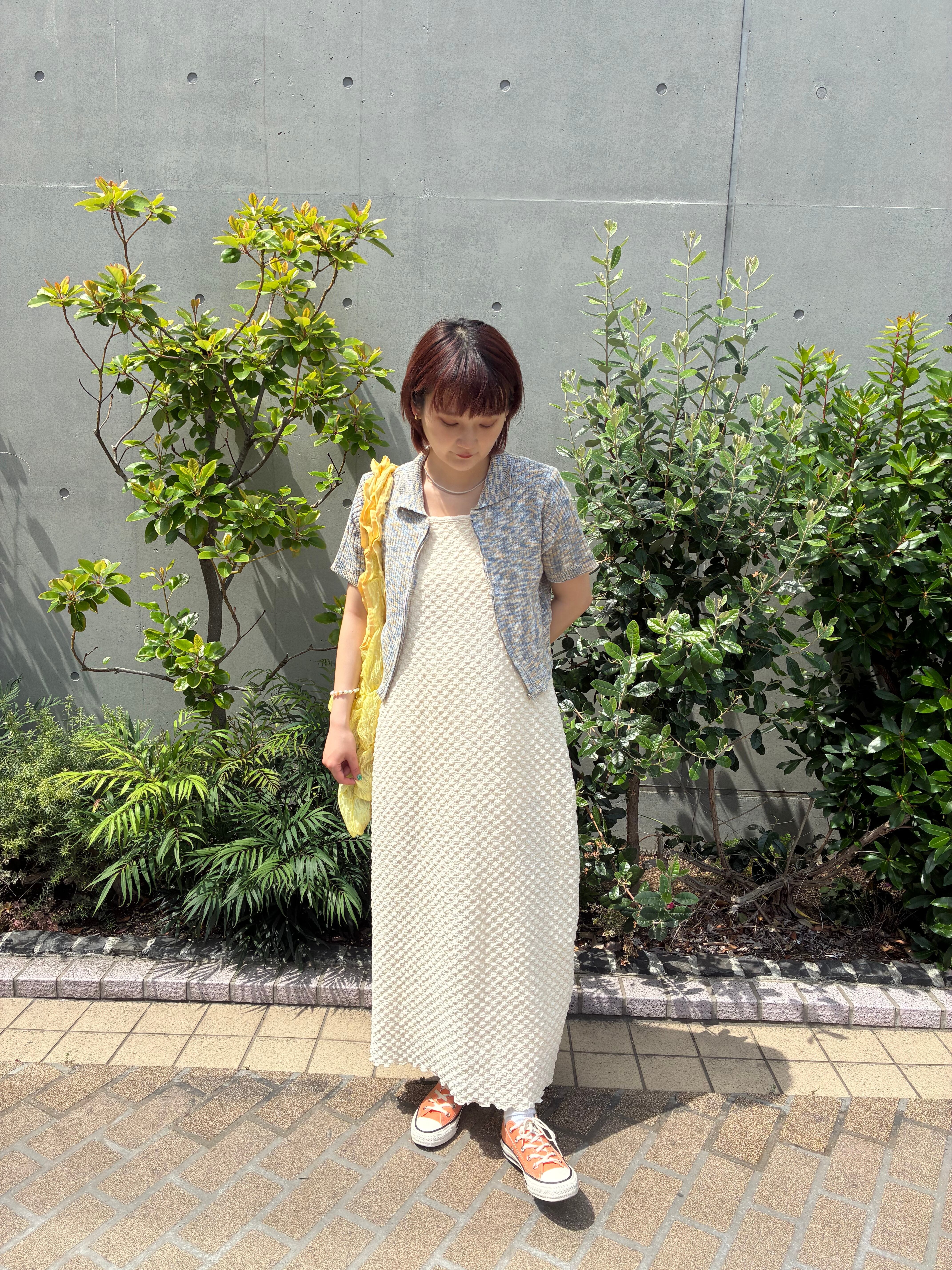 存在感たっぷりのカラーリングが目を惹くショート丈のサマーニットカーディガン
