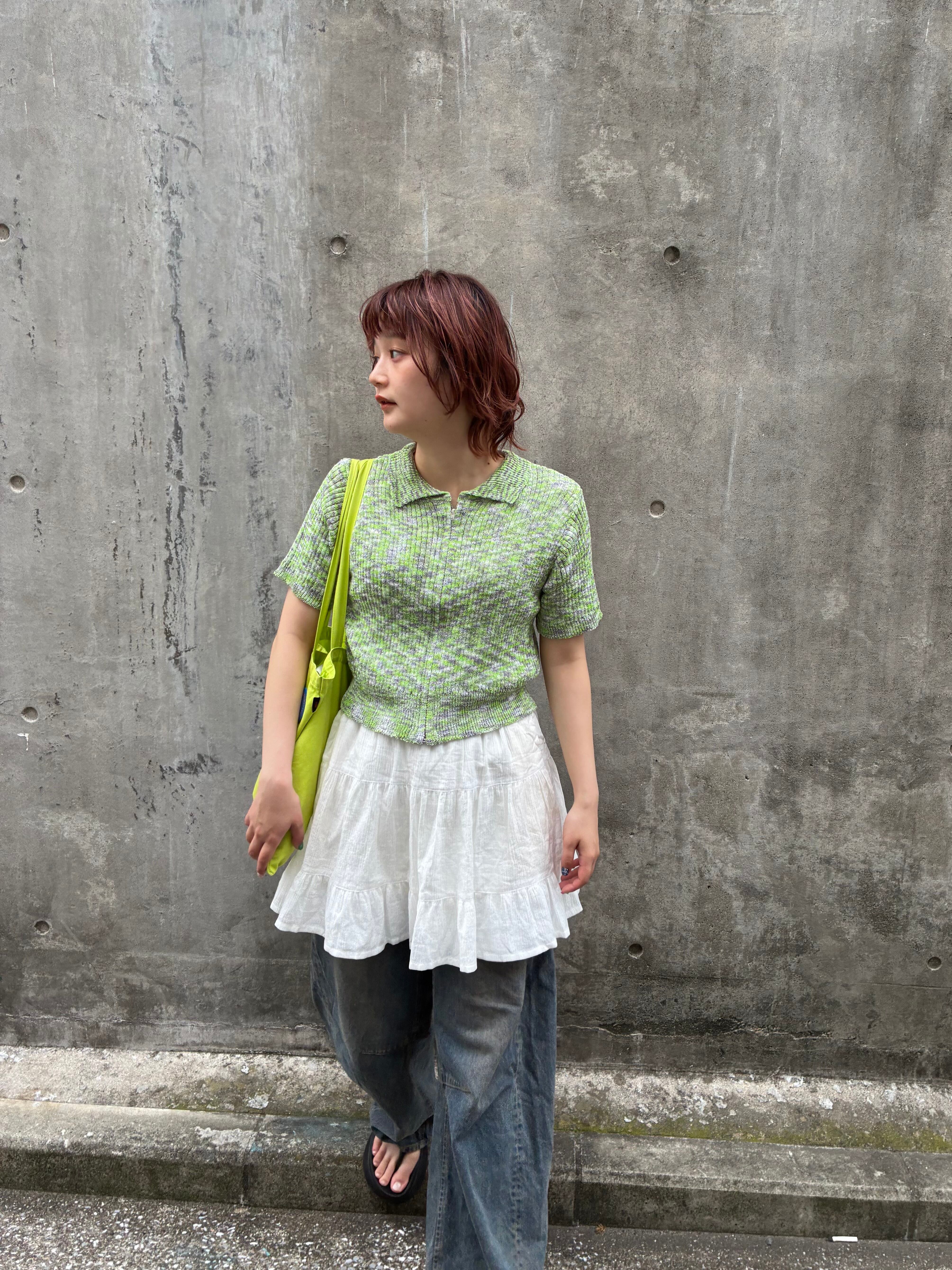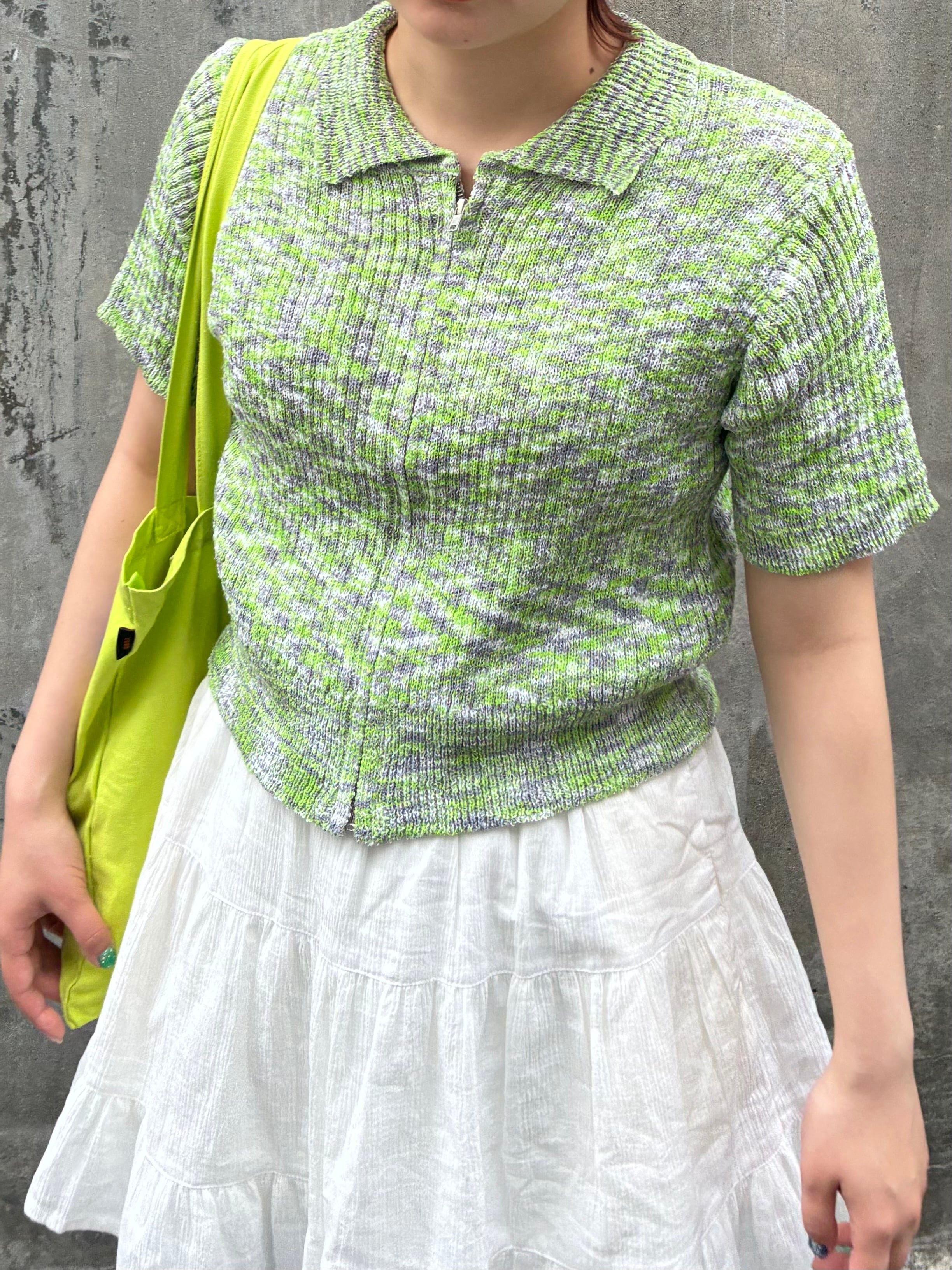 MIXジップニットカーディガン/グリーン