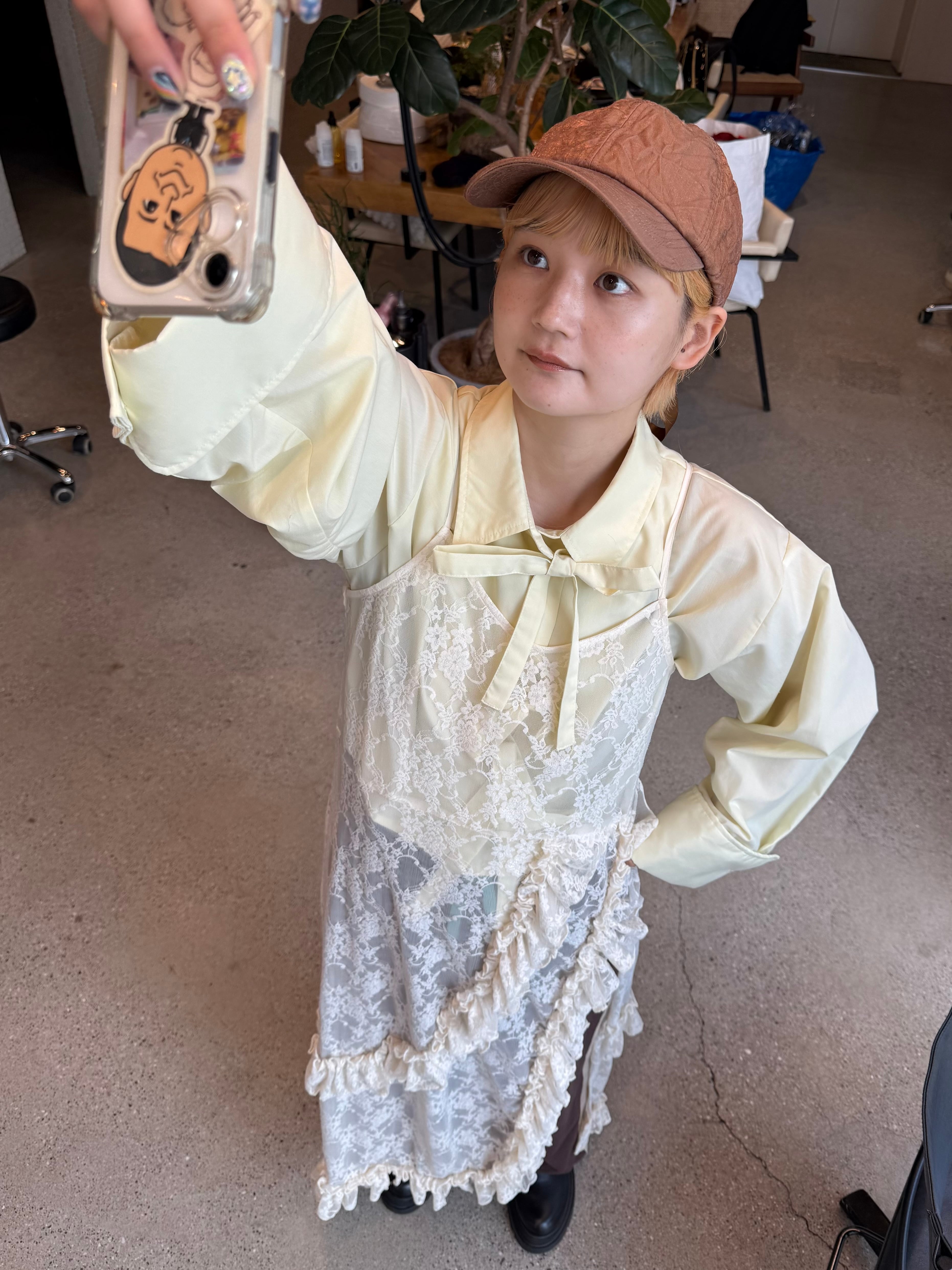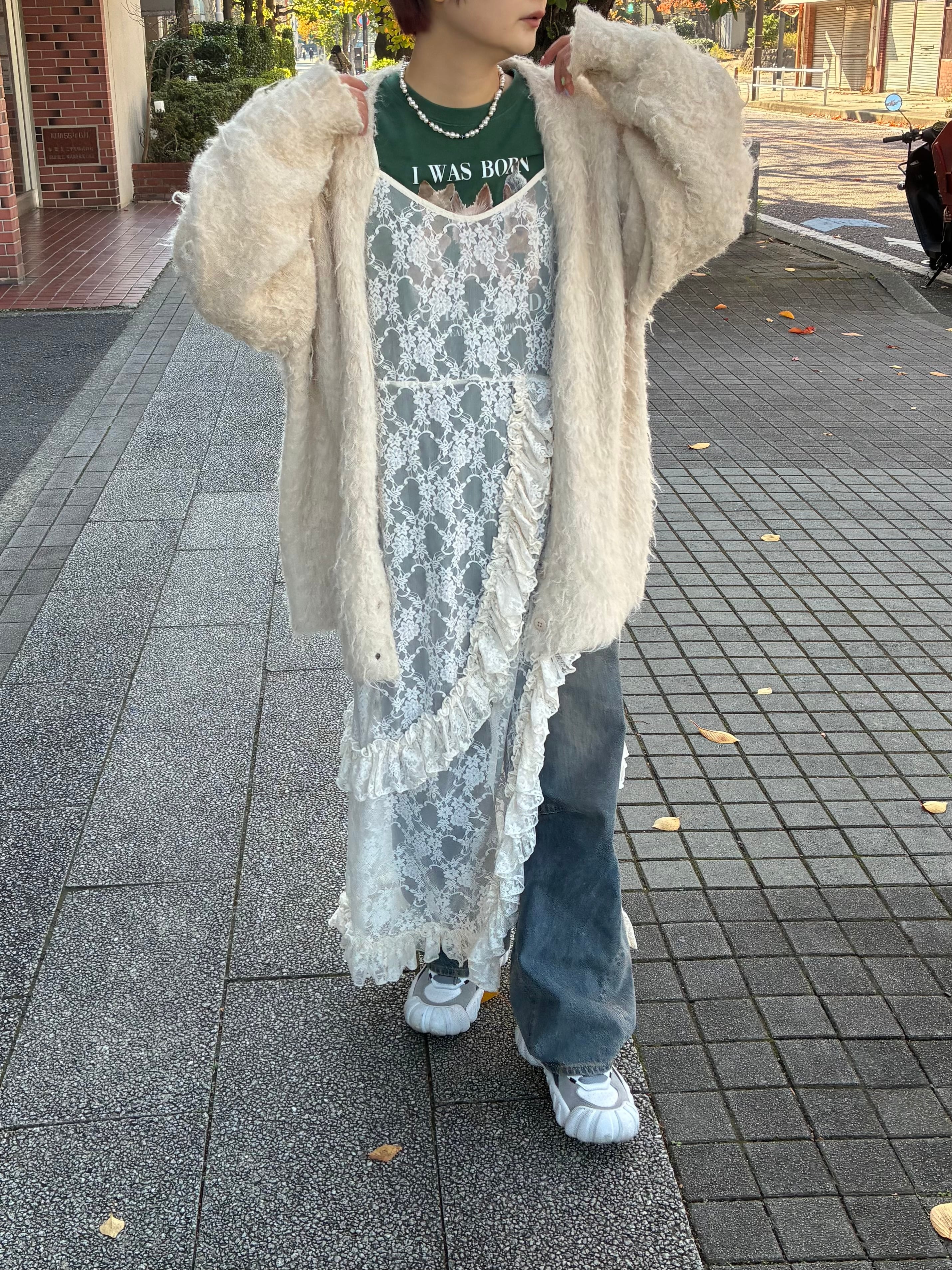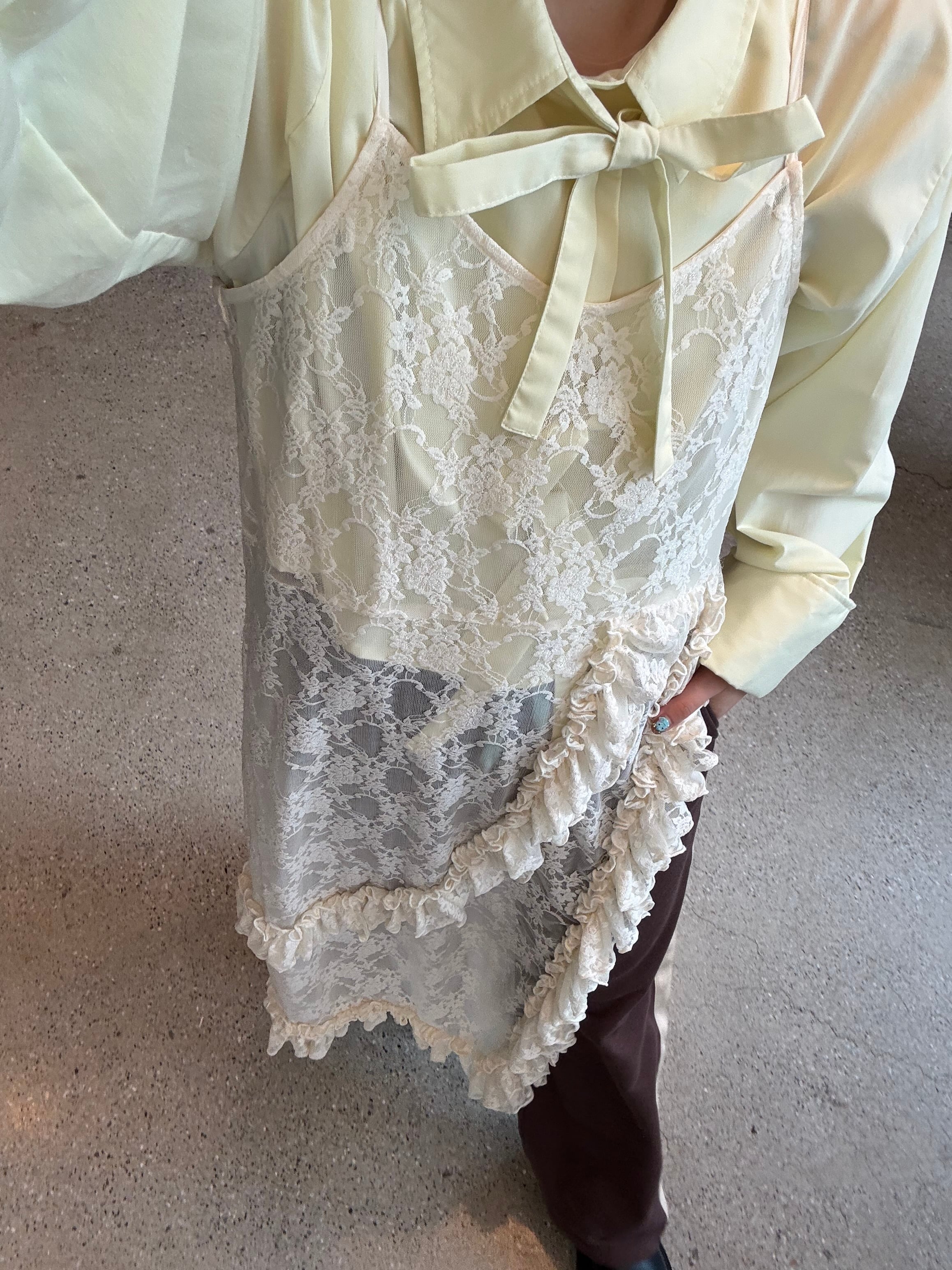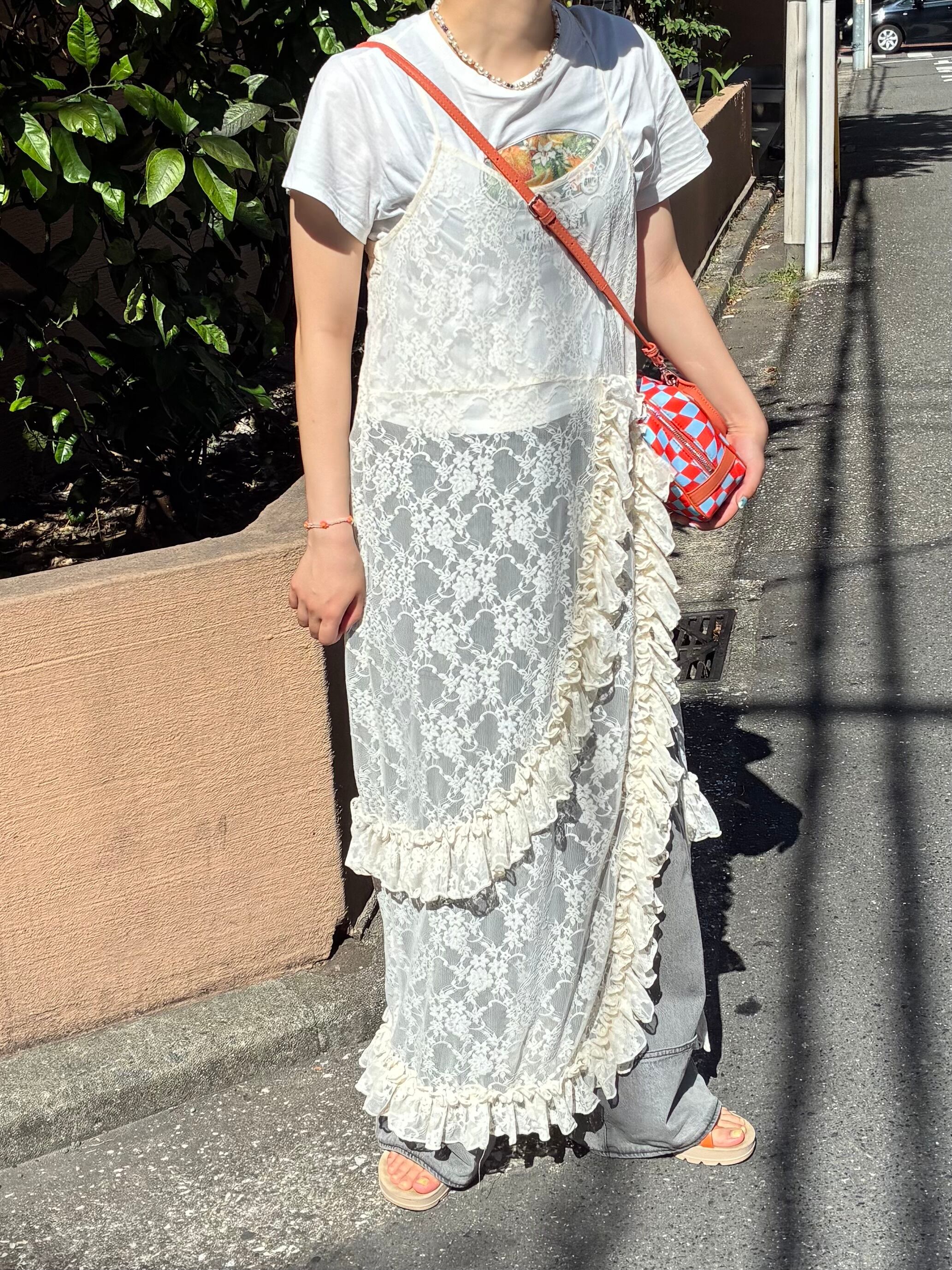 目を引くフリルたっぷりのレースキャミワンピース