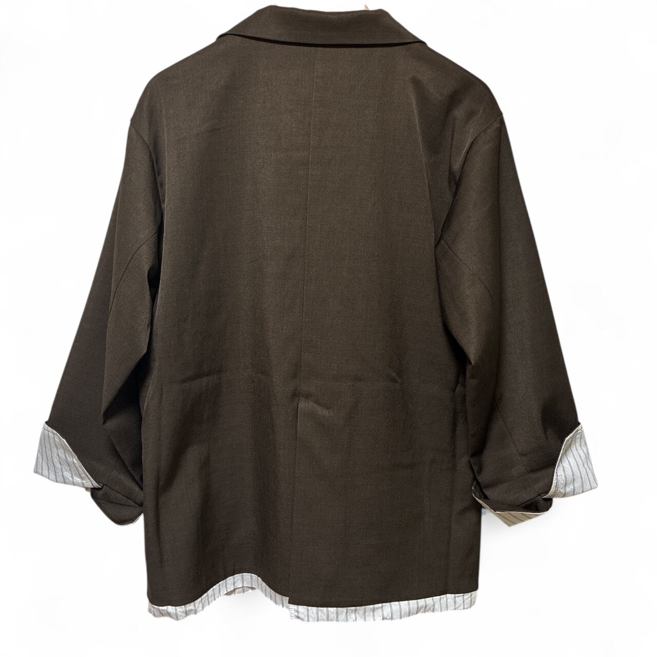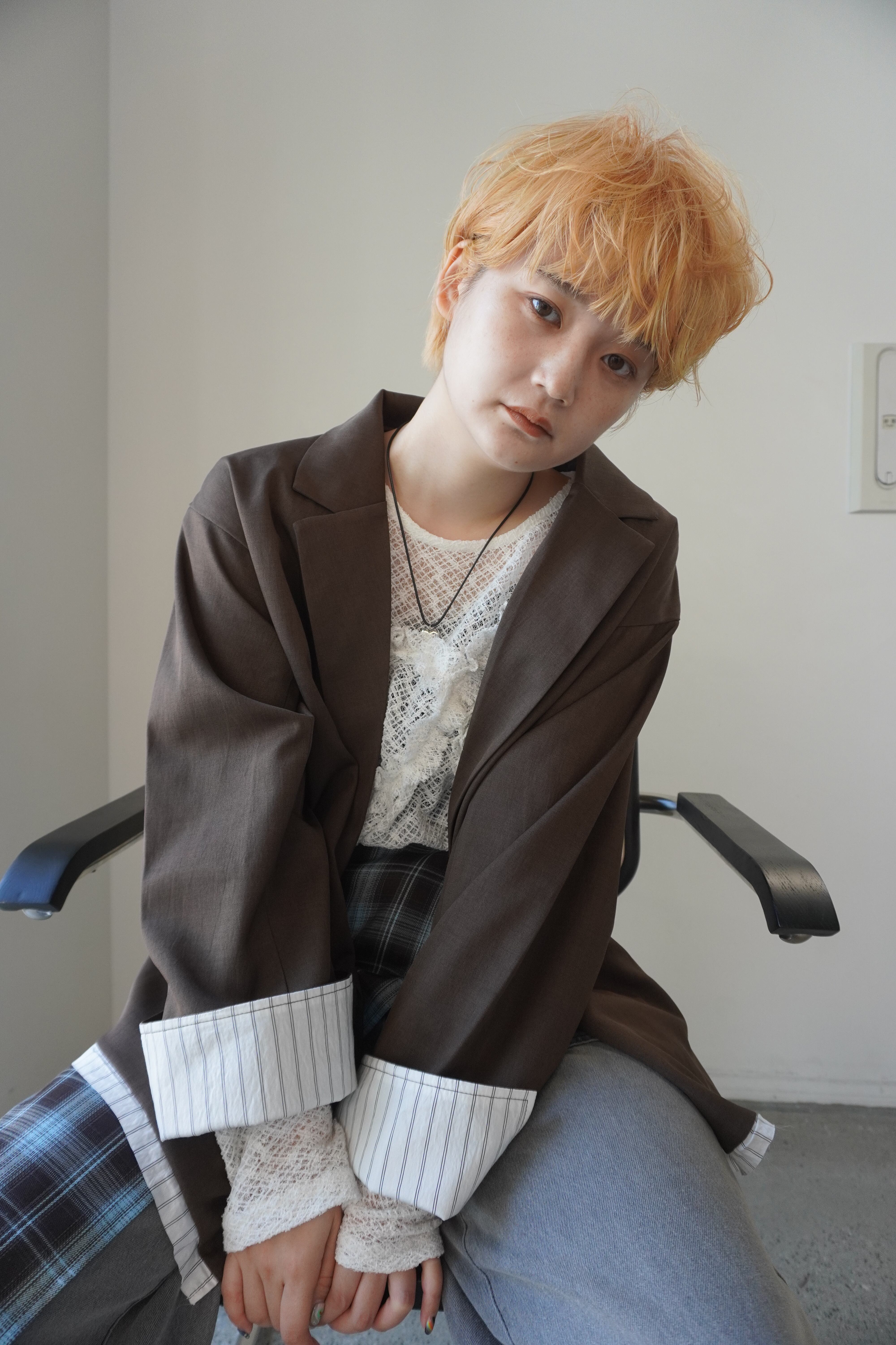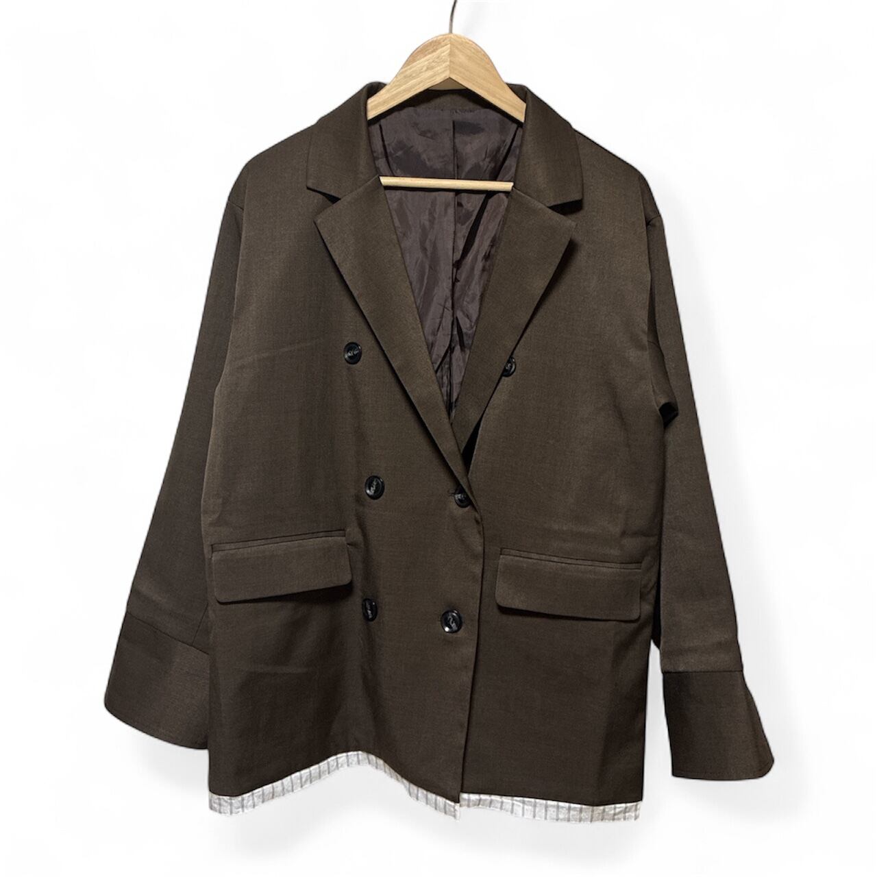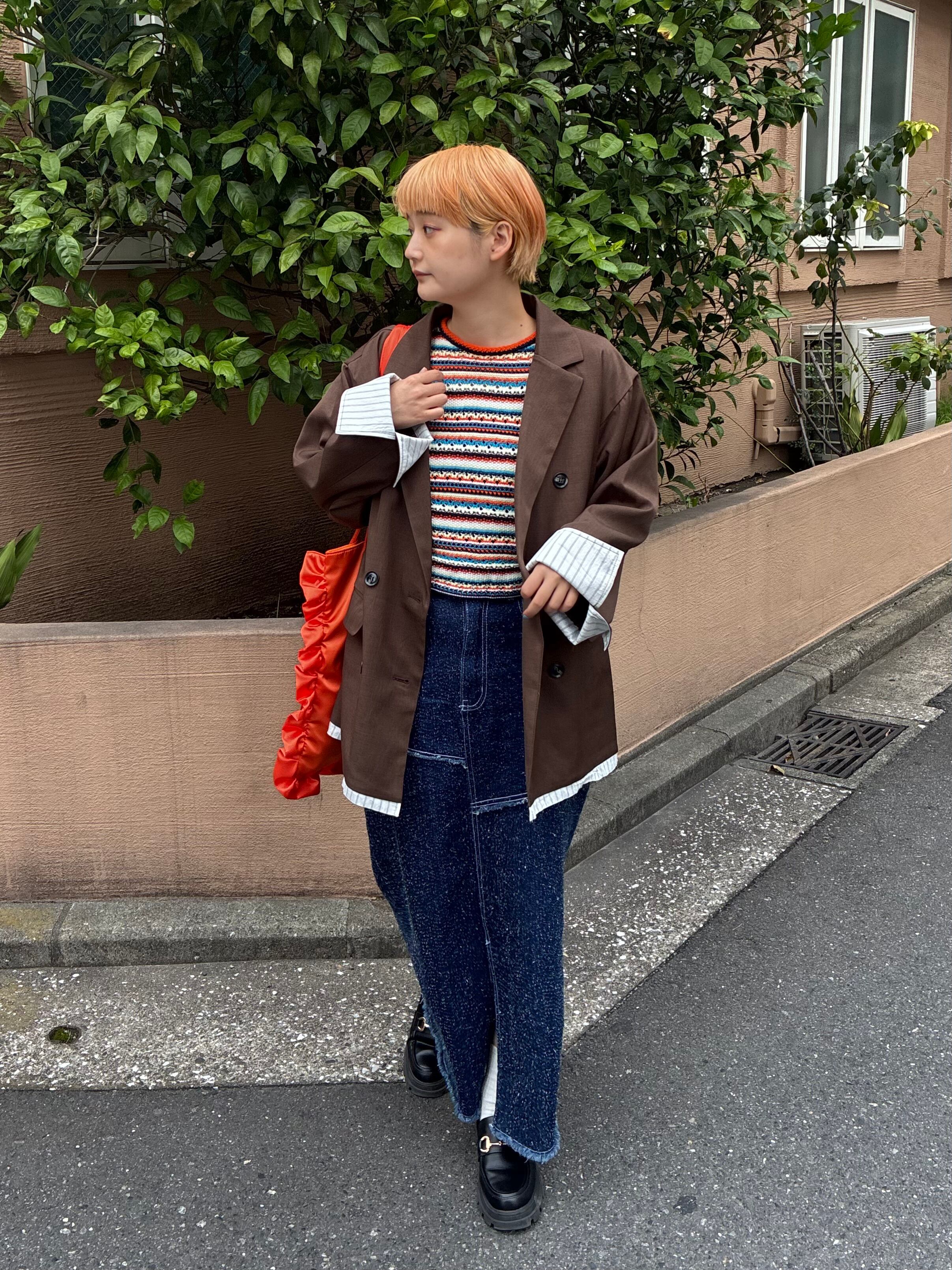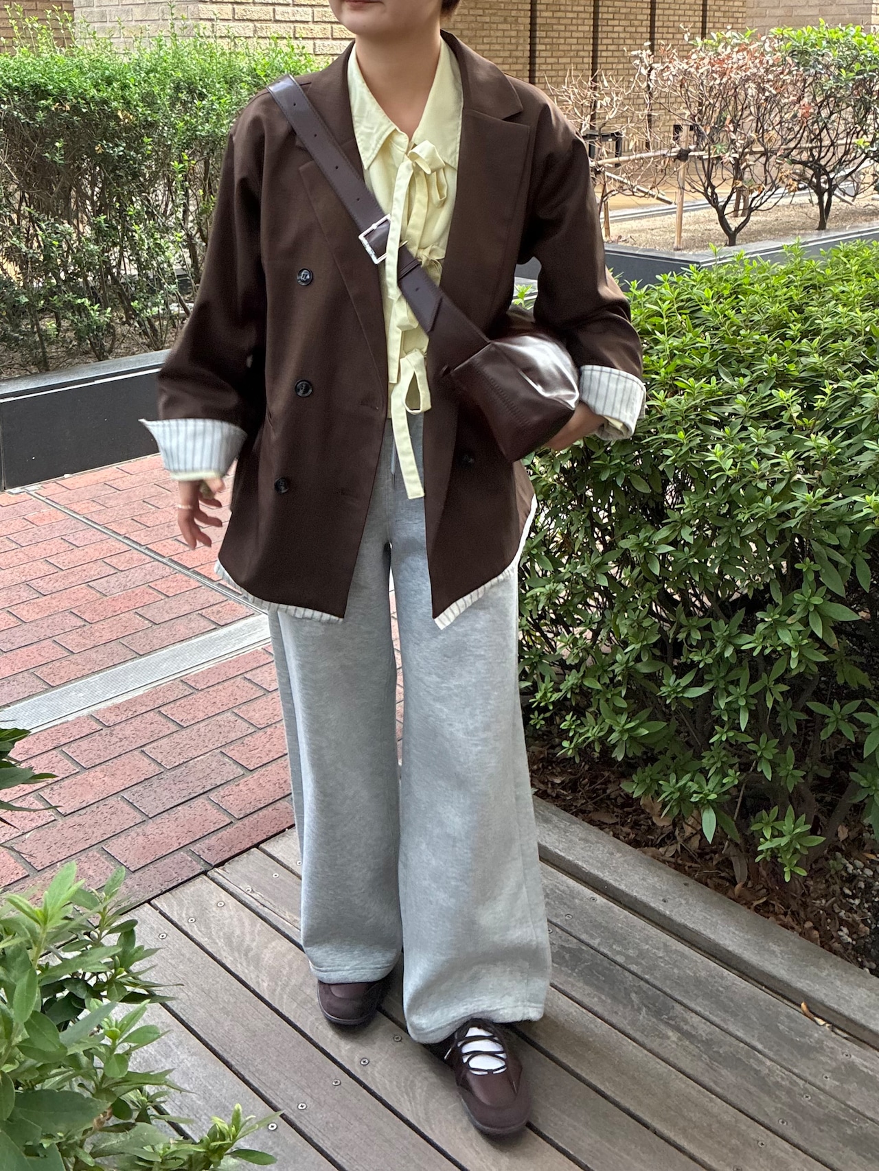 ハリがあり高見えするTRツイル素材と大人っぽく見せながらストライプのレイヤード風デザインが程よくカジュアルにも見せてくれるアイテム✨