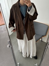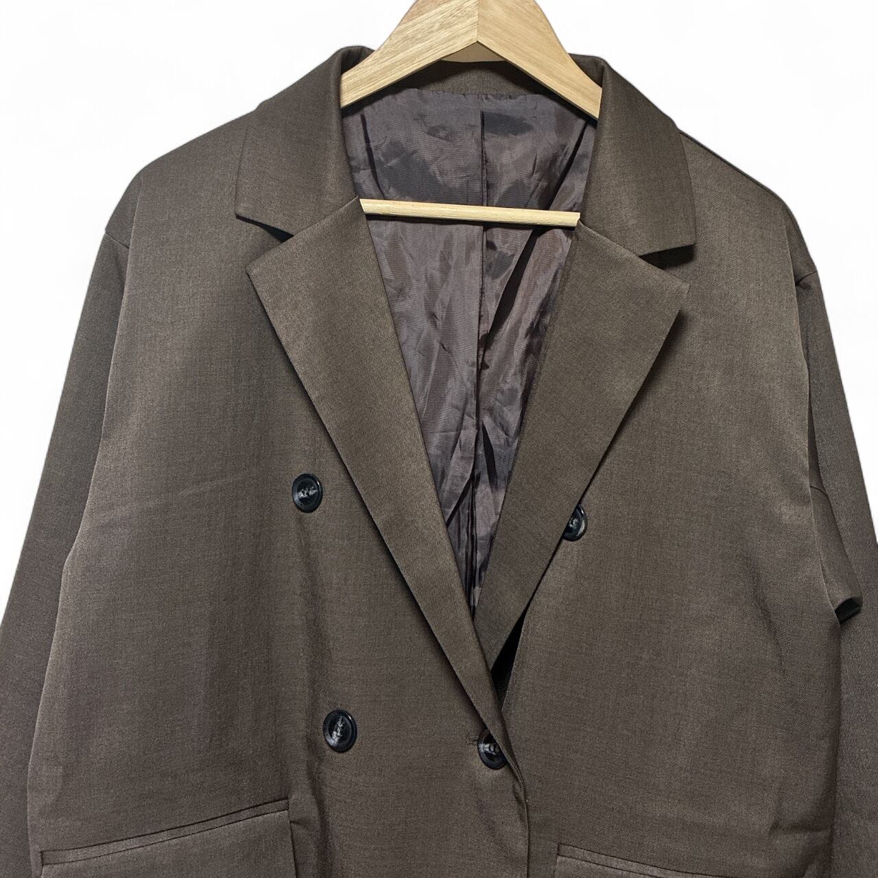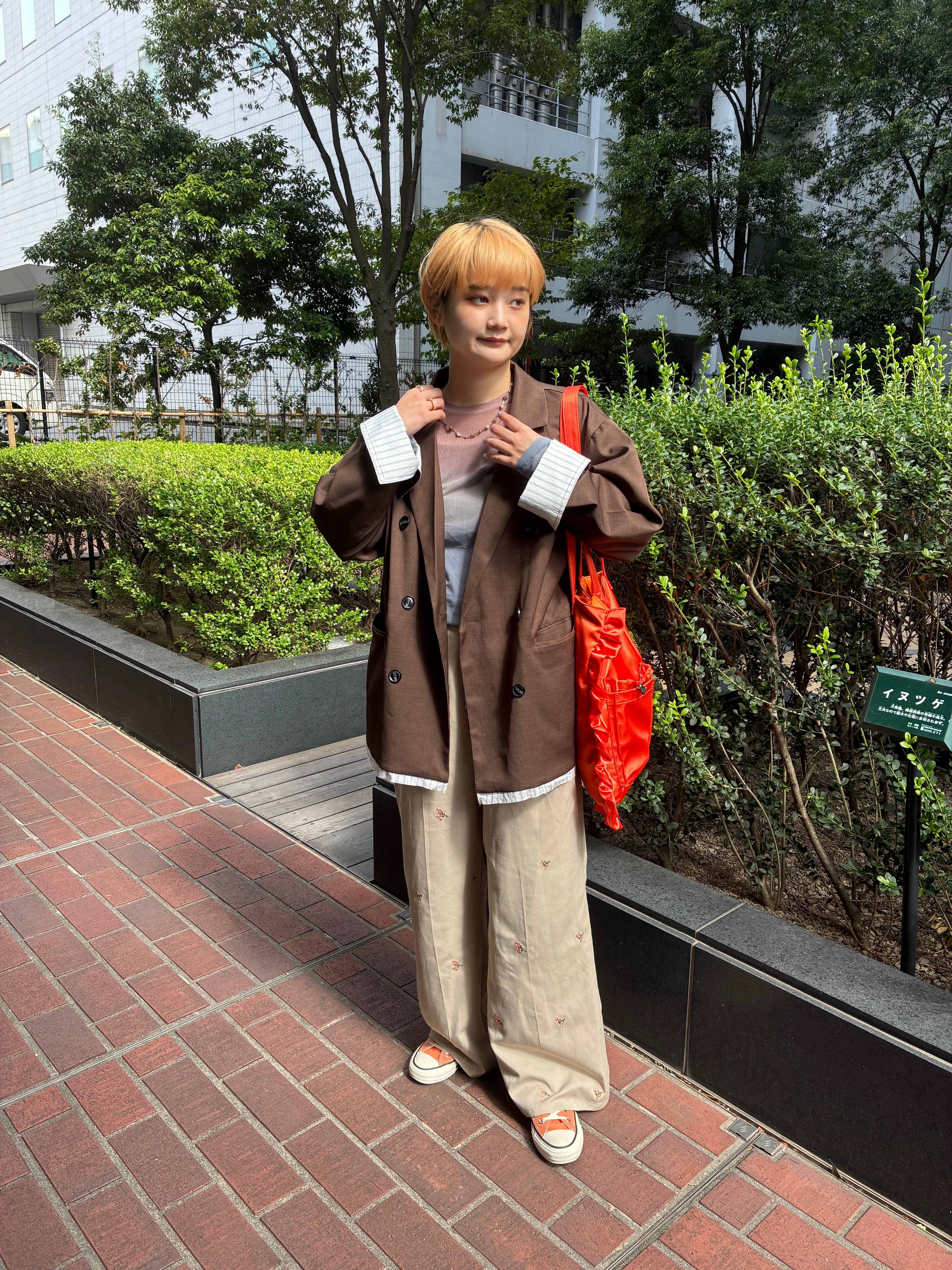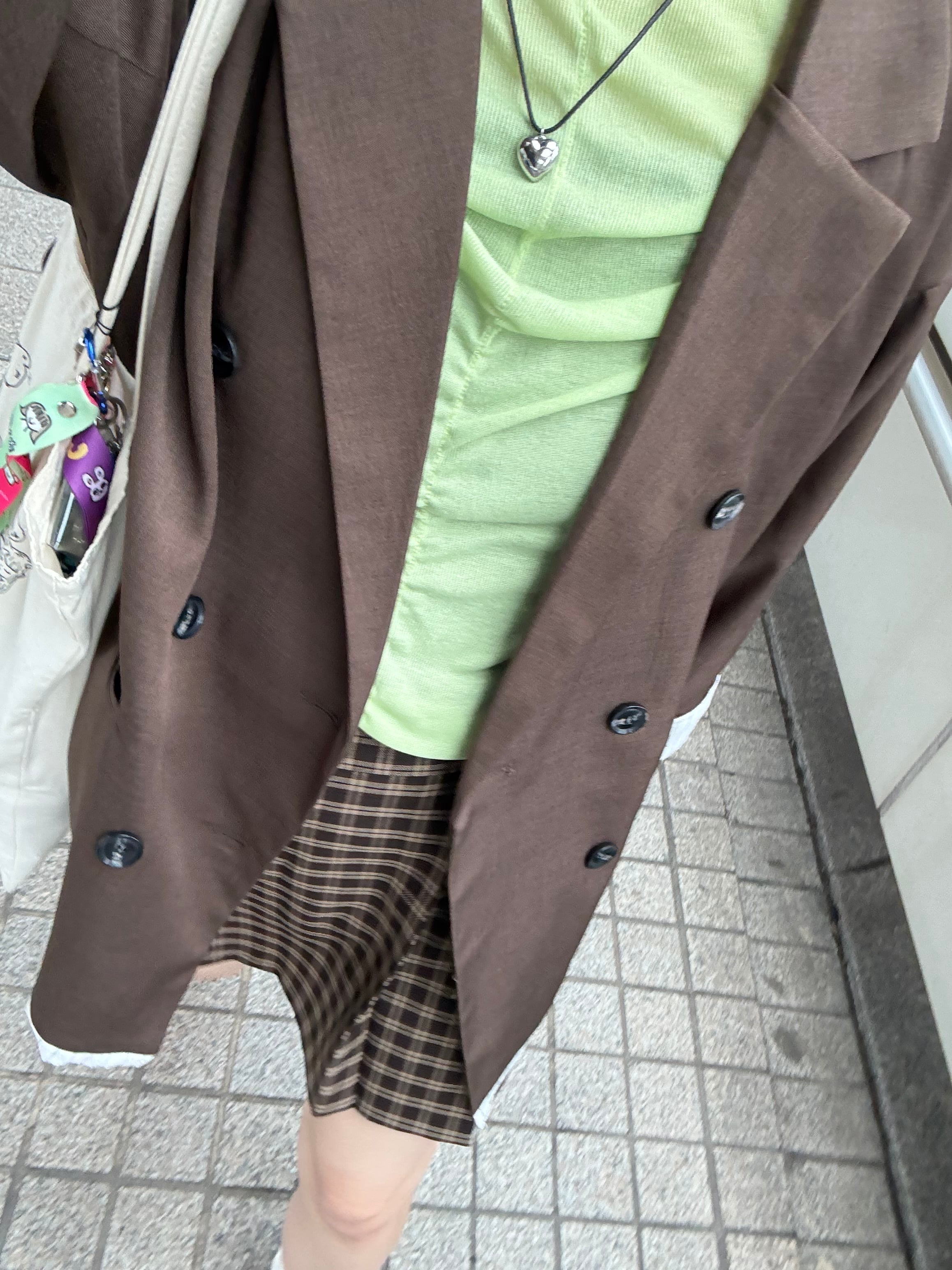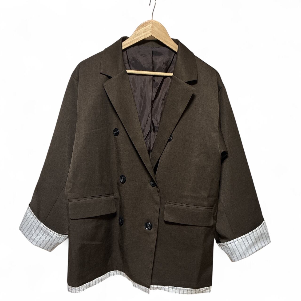 ハリがあり高見えするTRツイル素材と大人っぽく見せながらストライプのレイヤード風デザインが程よくカジュアルにも見せてくれるアイテム✨