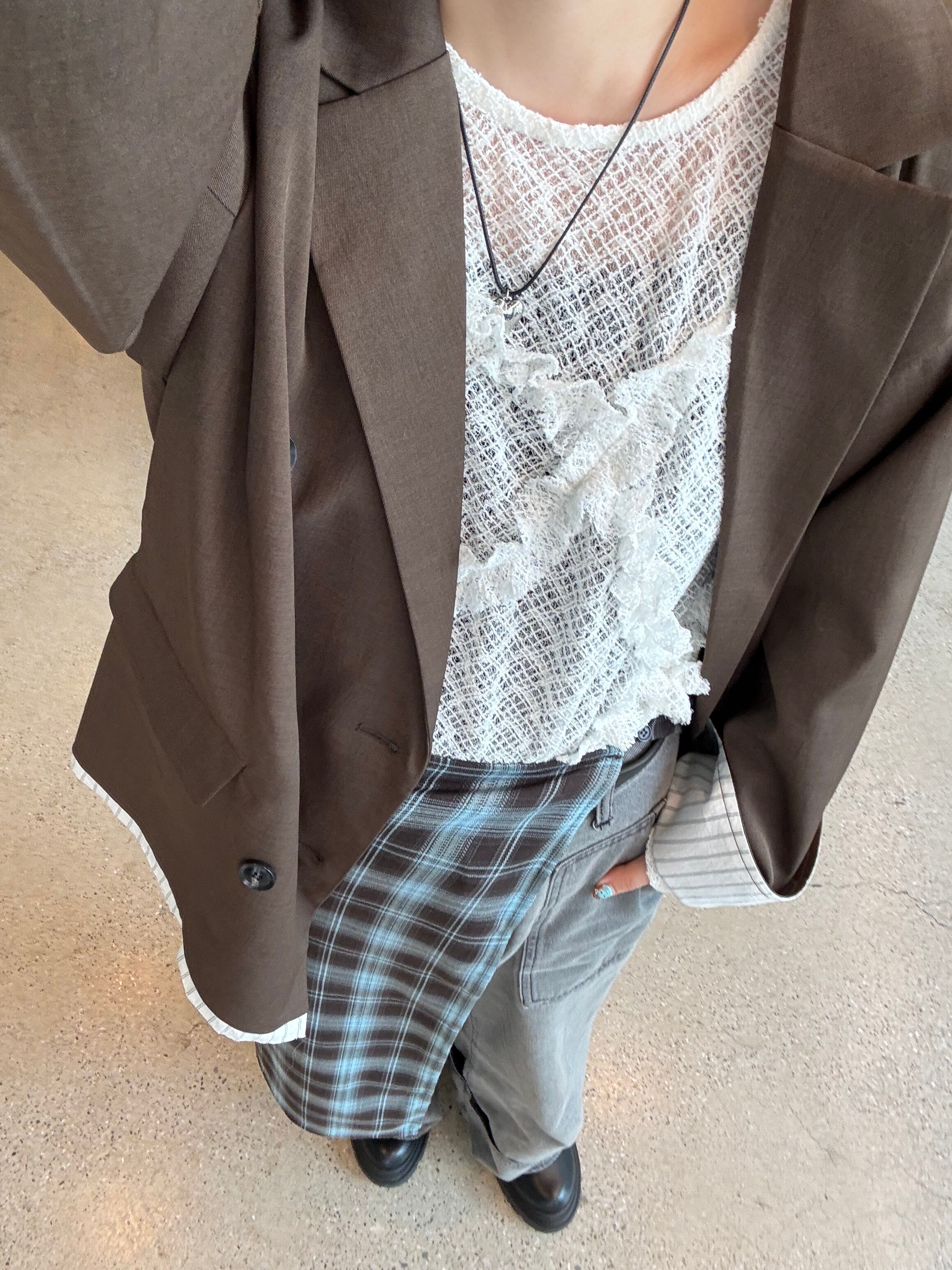 採寸は平置きにして測っておりますが、 素材や個体差により、若干の誤差があることがございます。