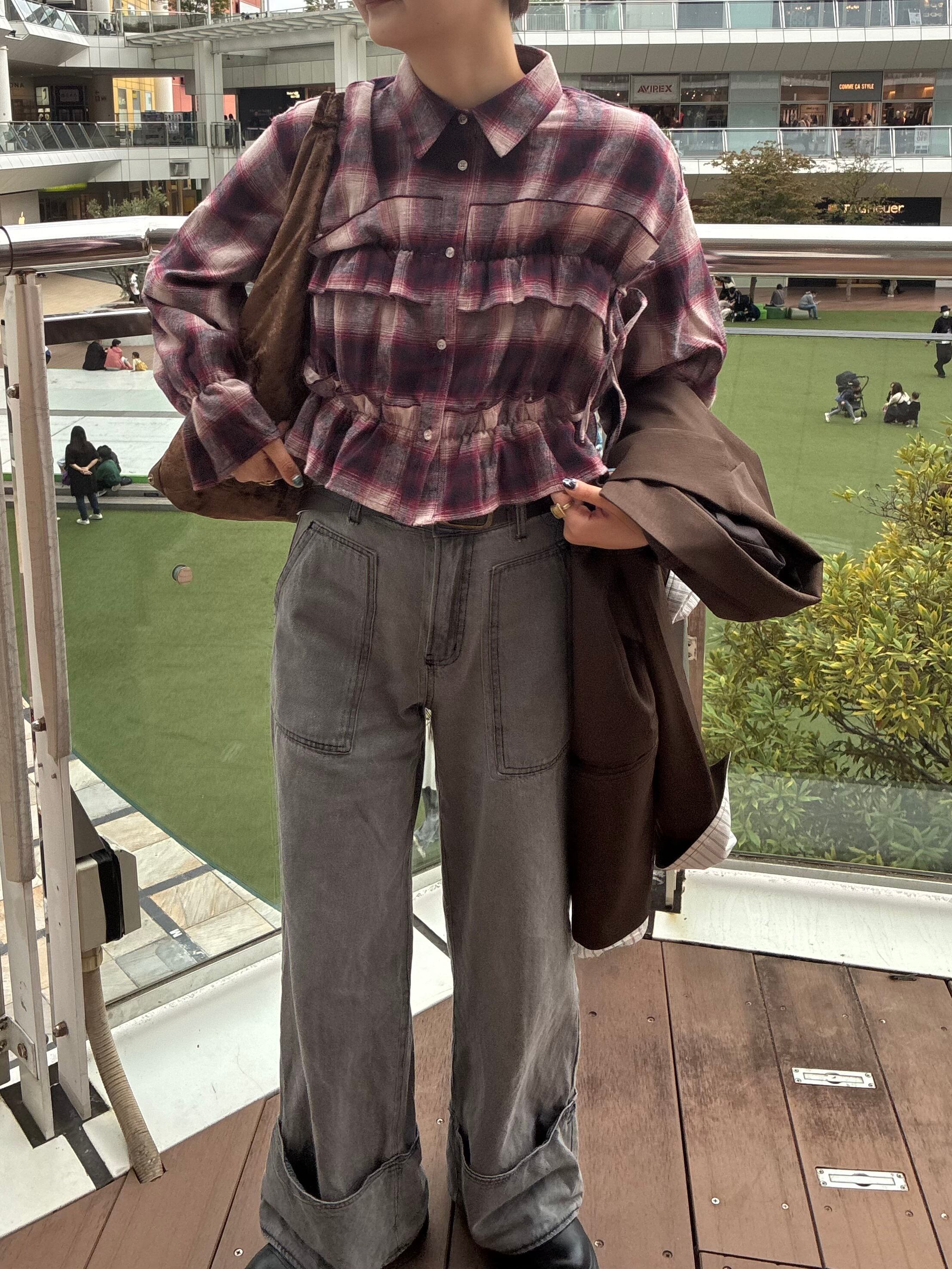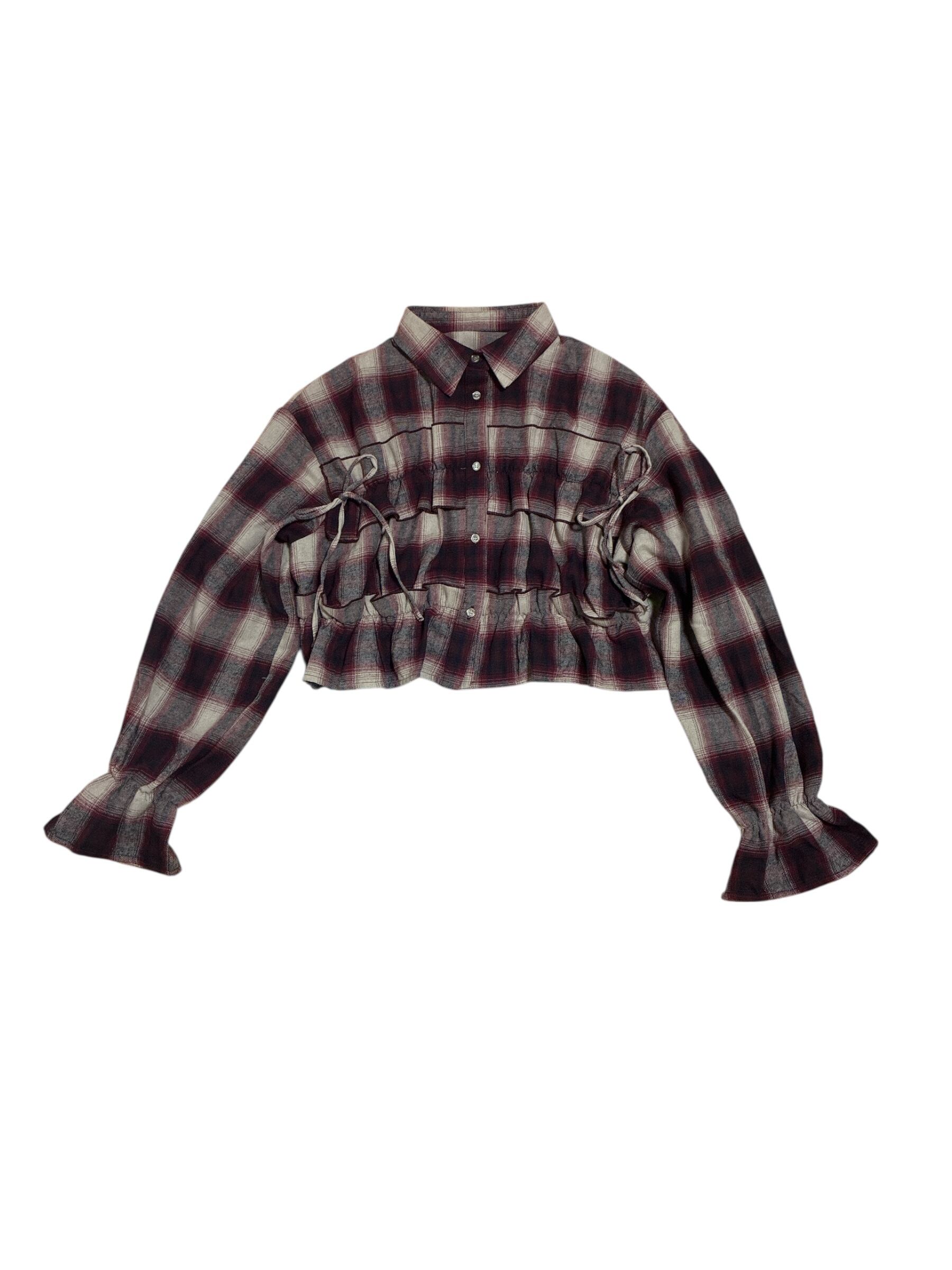 ふんわりとした柔らかなTCR先染めビエラ素材を使用したチェックブラウス
