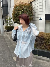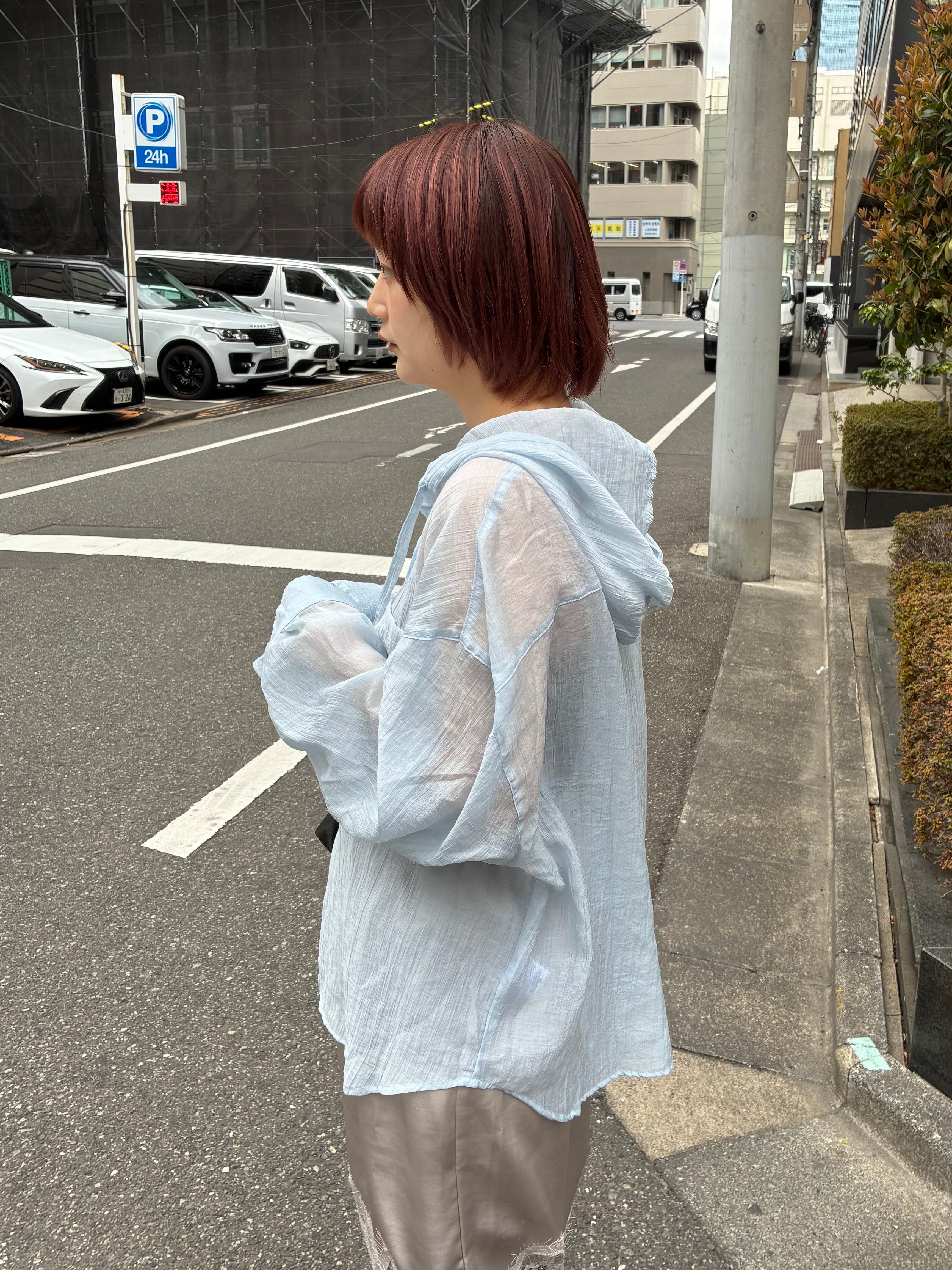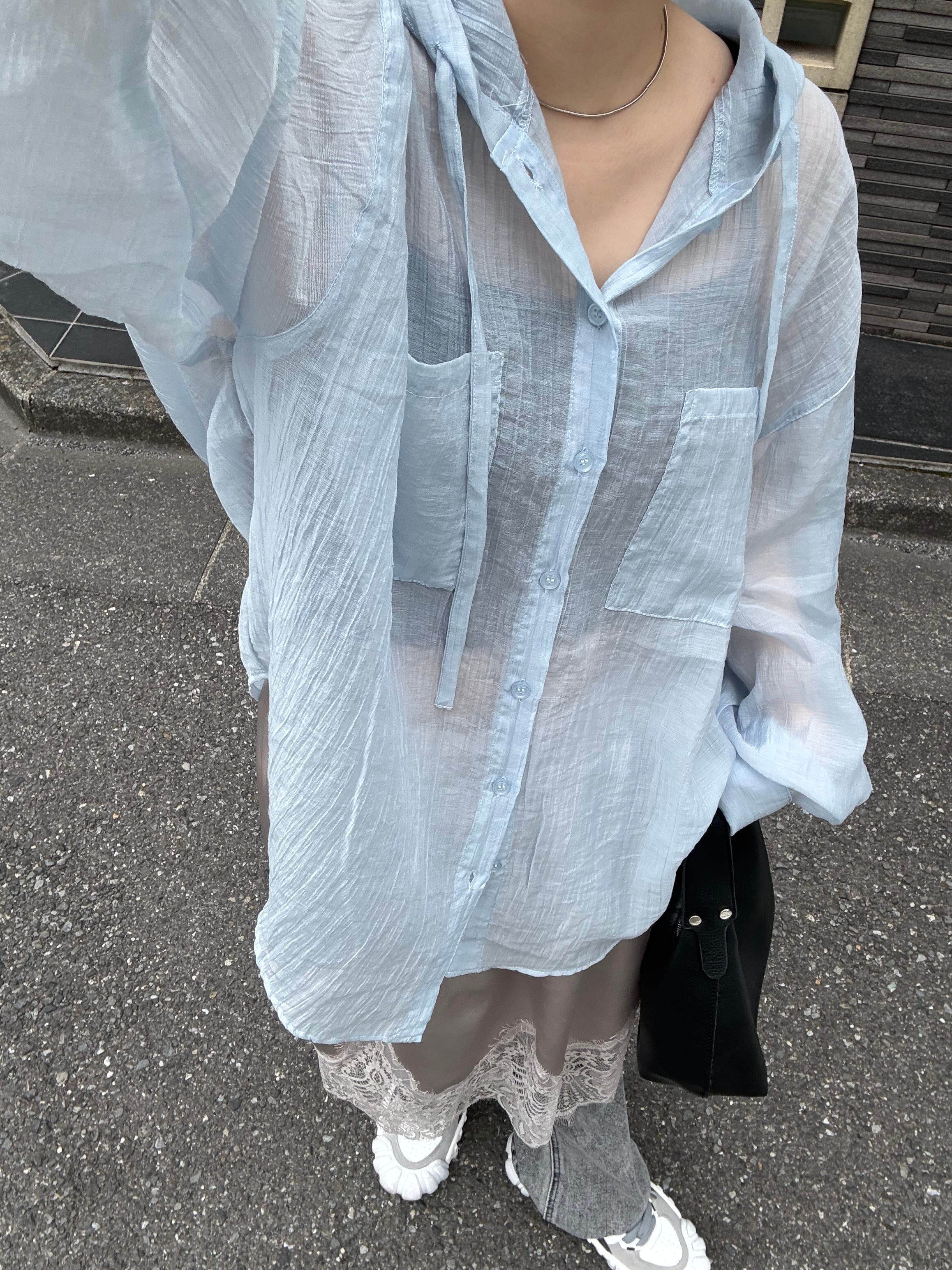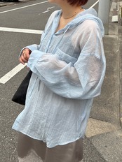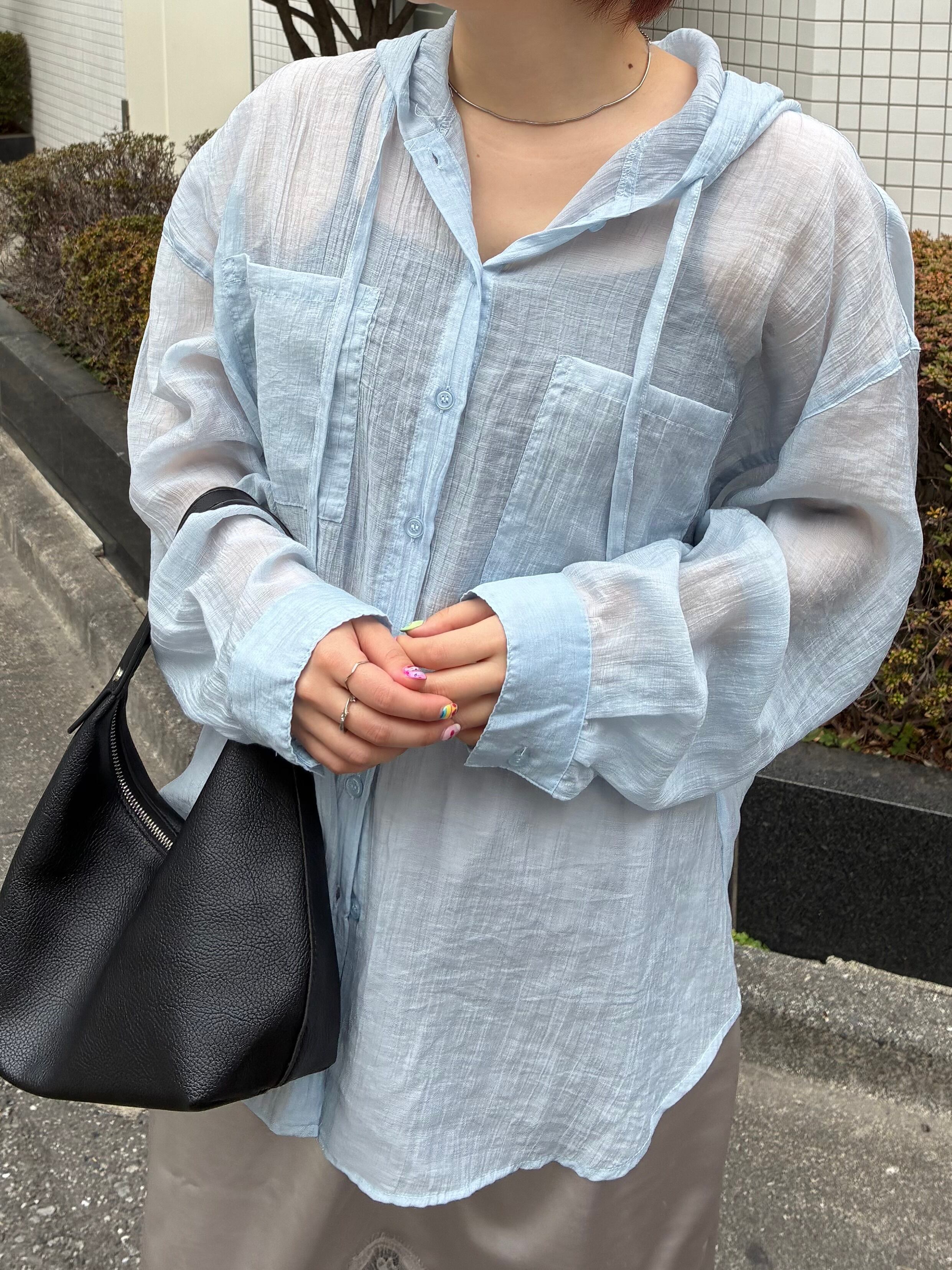 シアーフードビッグシャツ/ライトブルー