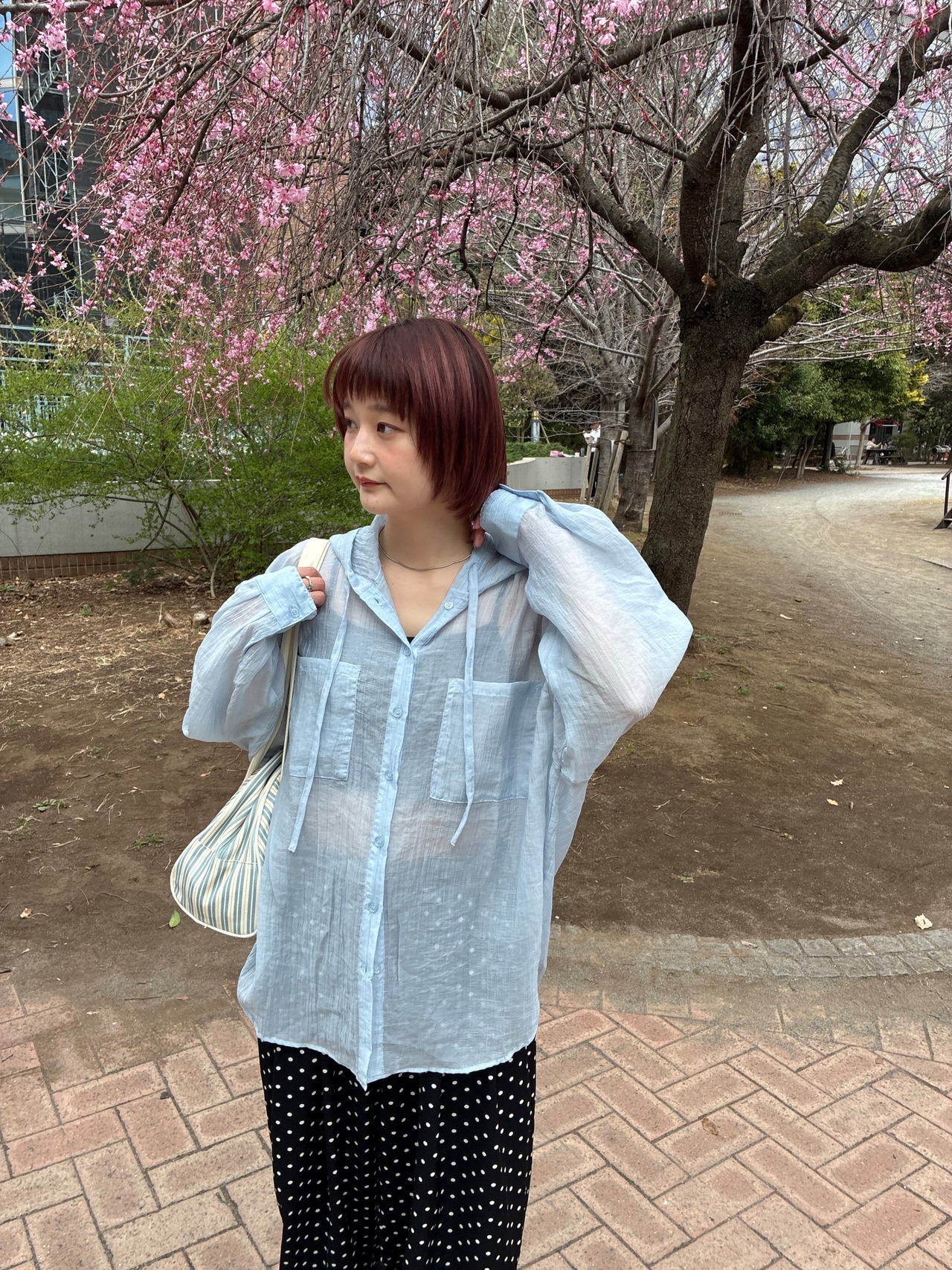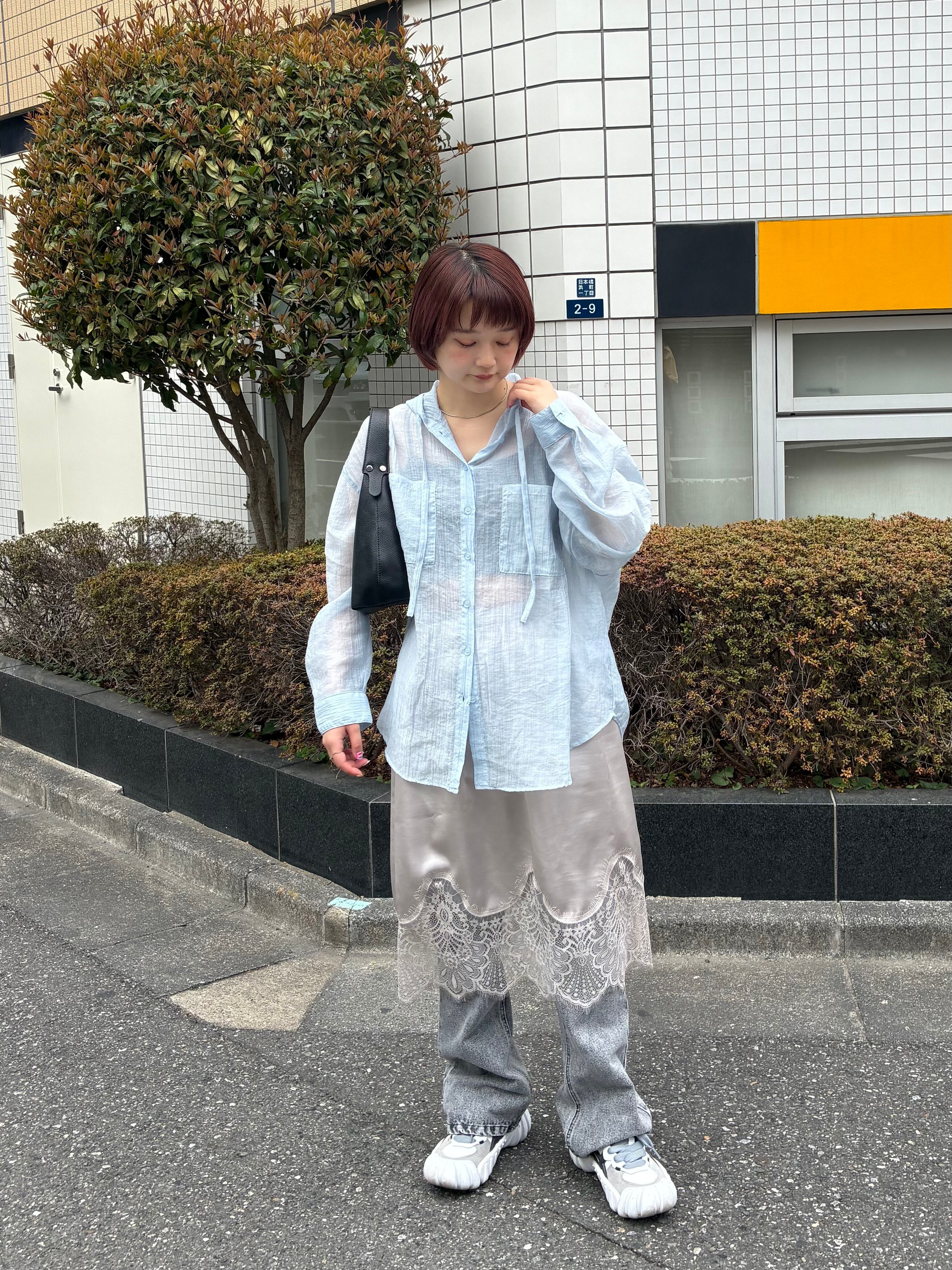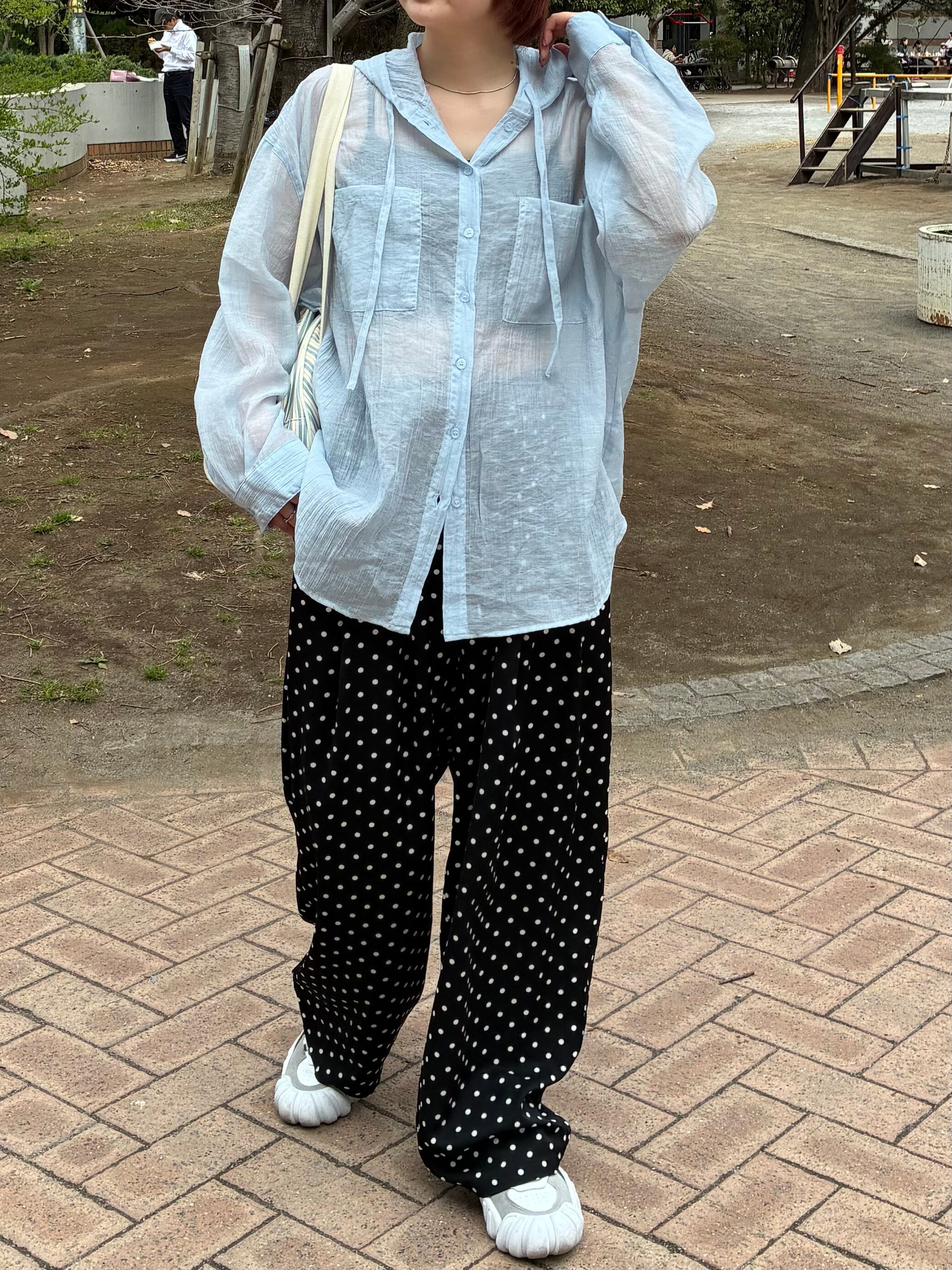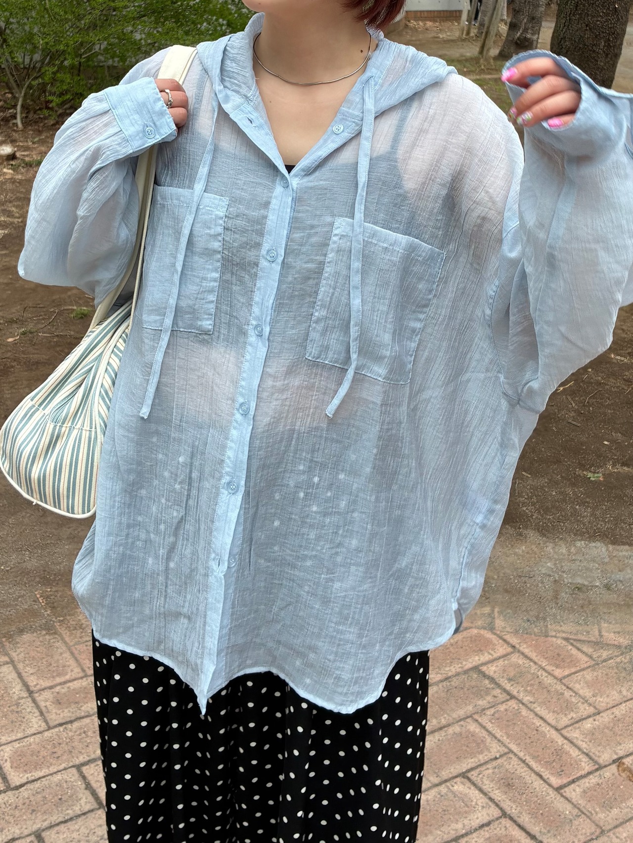 シアーフードビッグシャツ/ライトブルー
