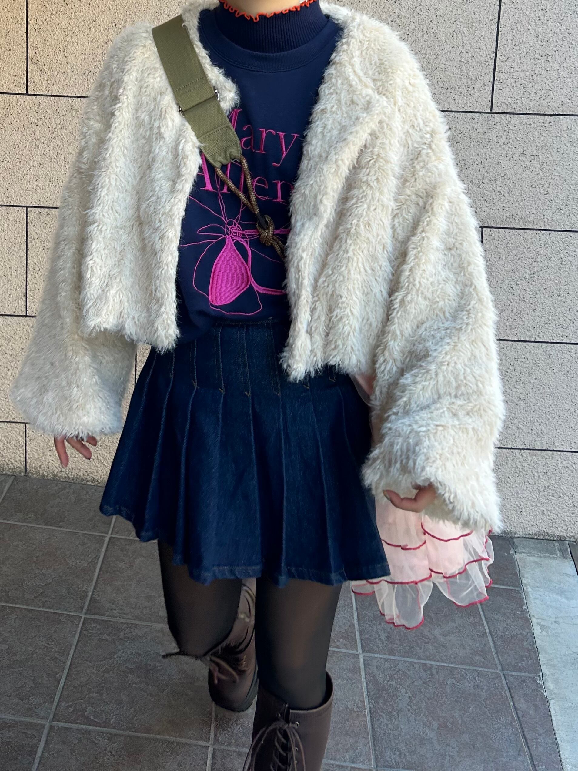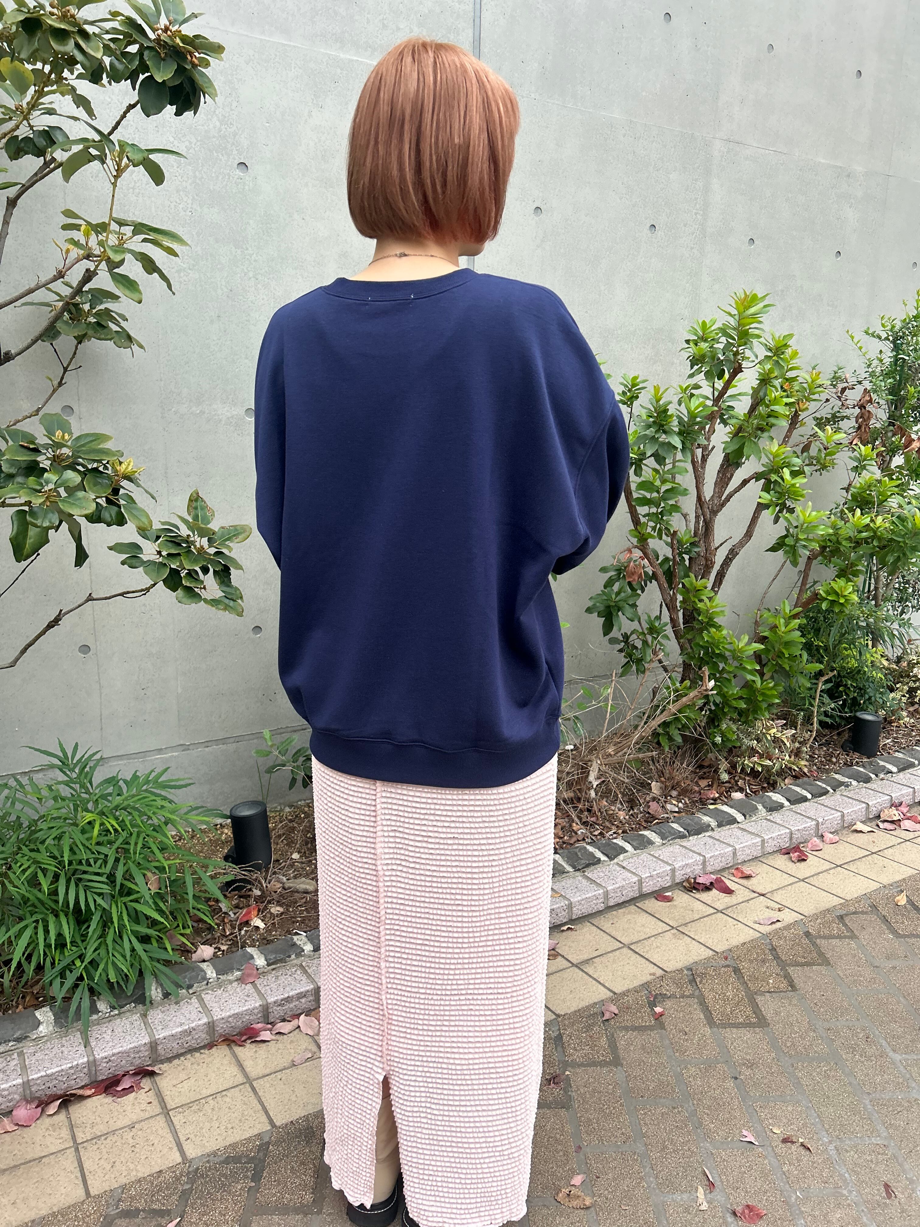 ゆったりとしたシルエットなのでタイトなスカートや、コンパクトなパンツが相性抜群。