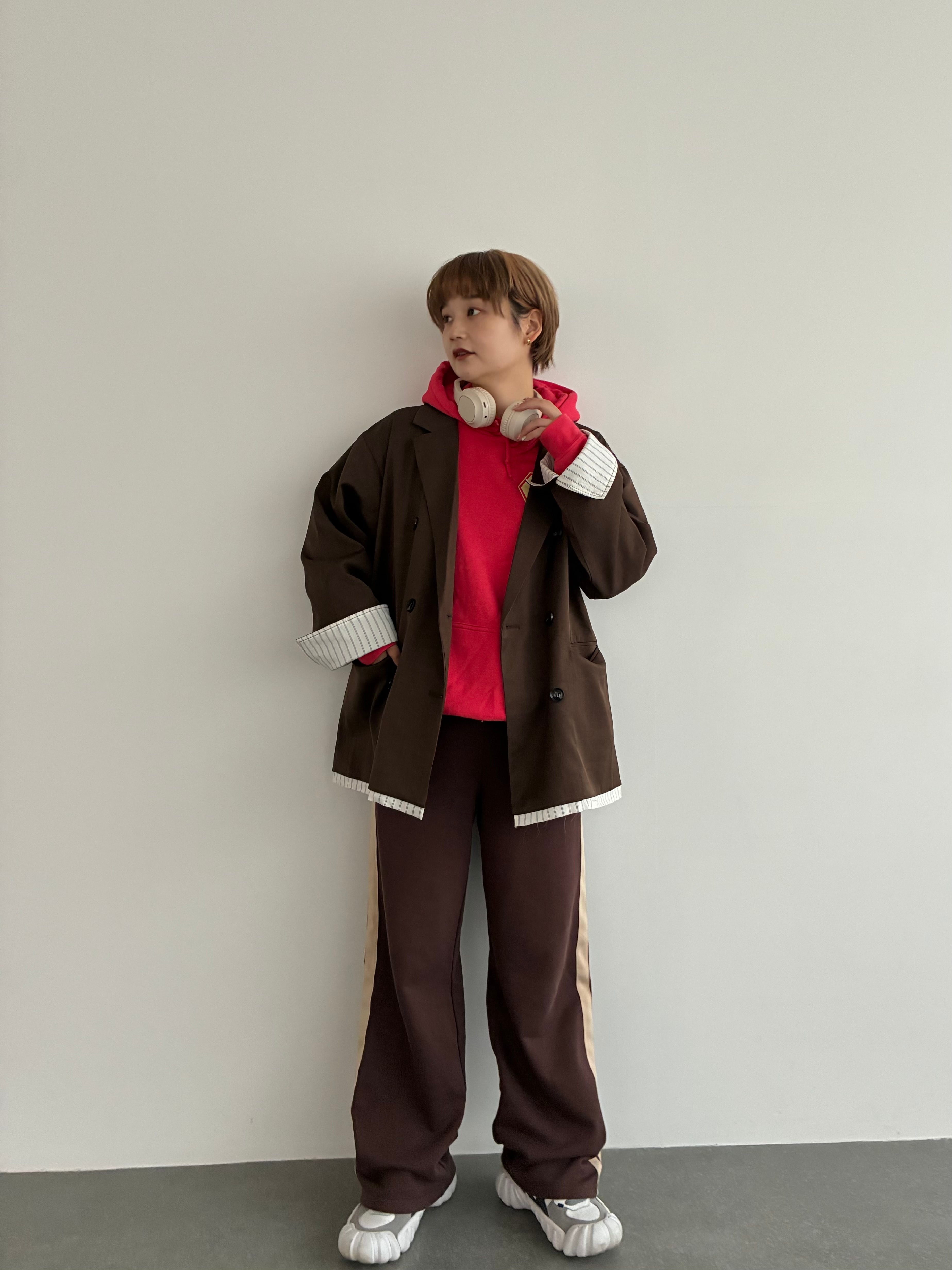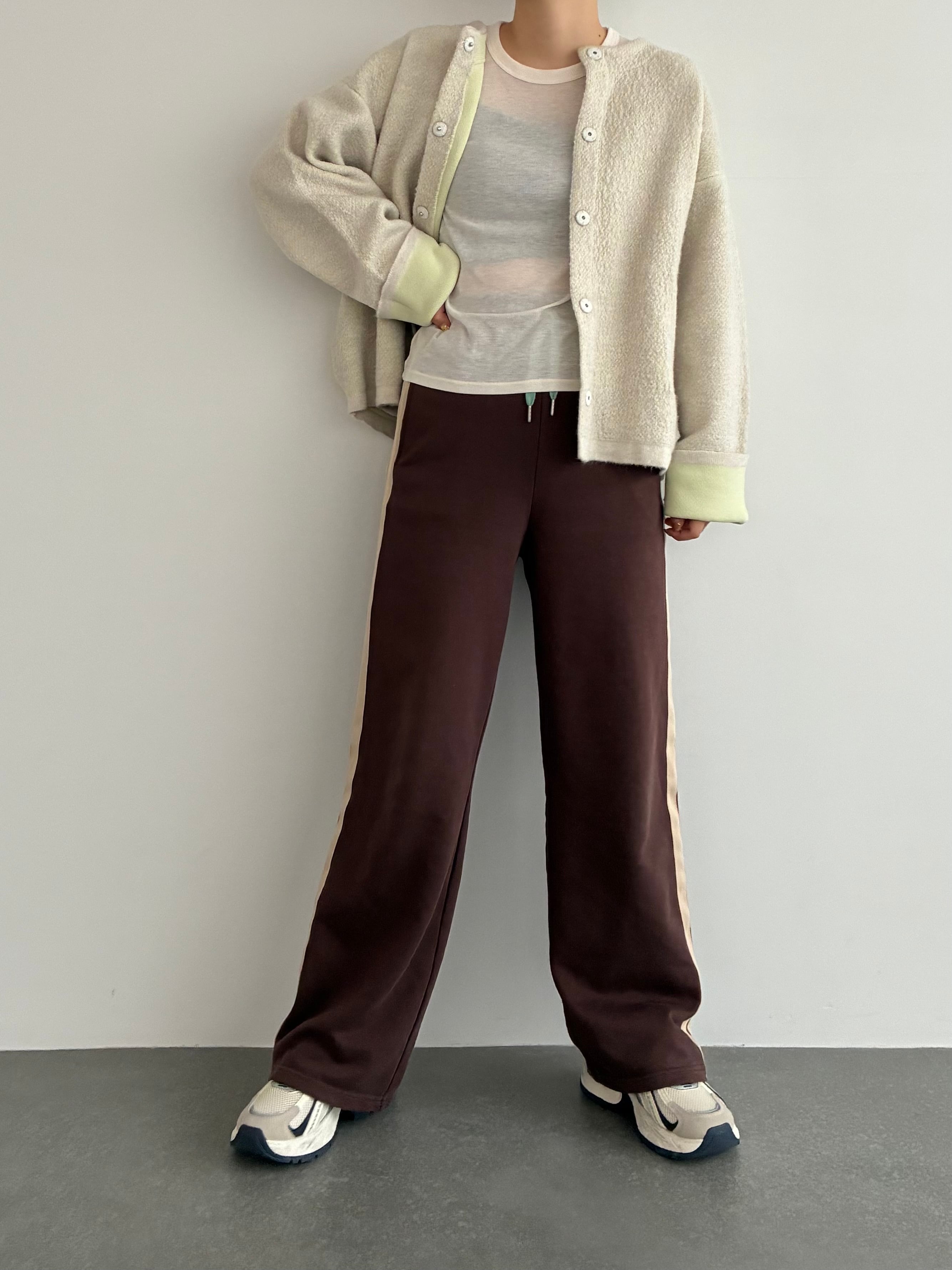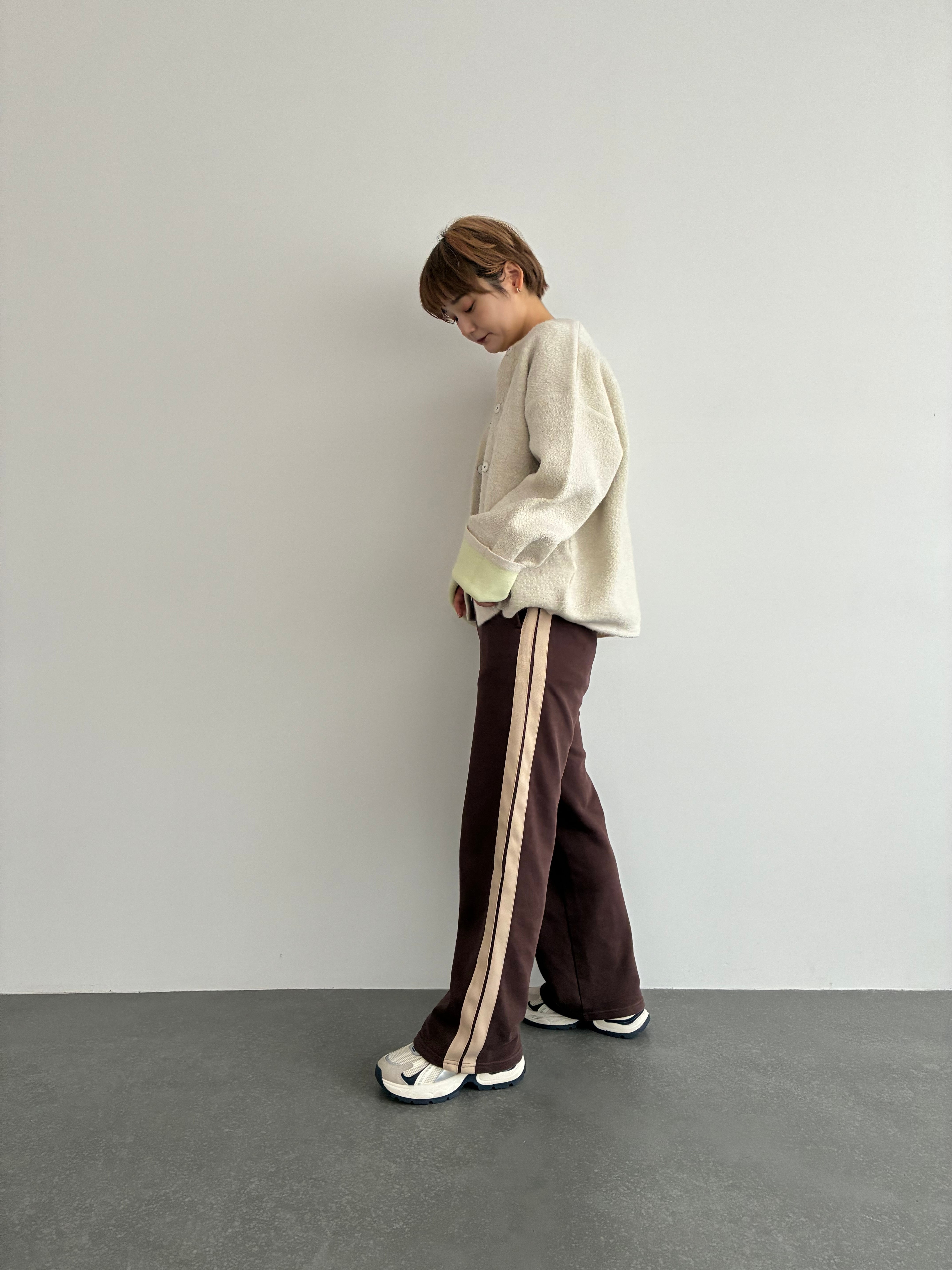 ウエストの紐も配色になった、Vintageライクな配色ラインのパンツです。2本のニットテープサイドラインがレトロな雰囲気で◎