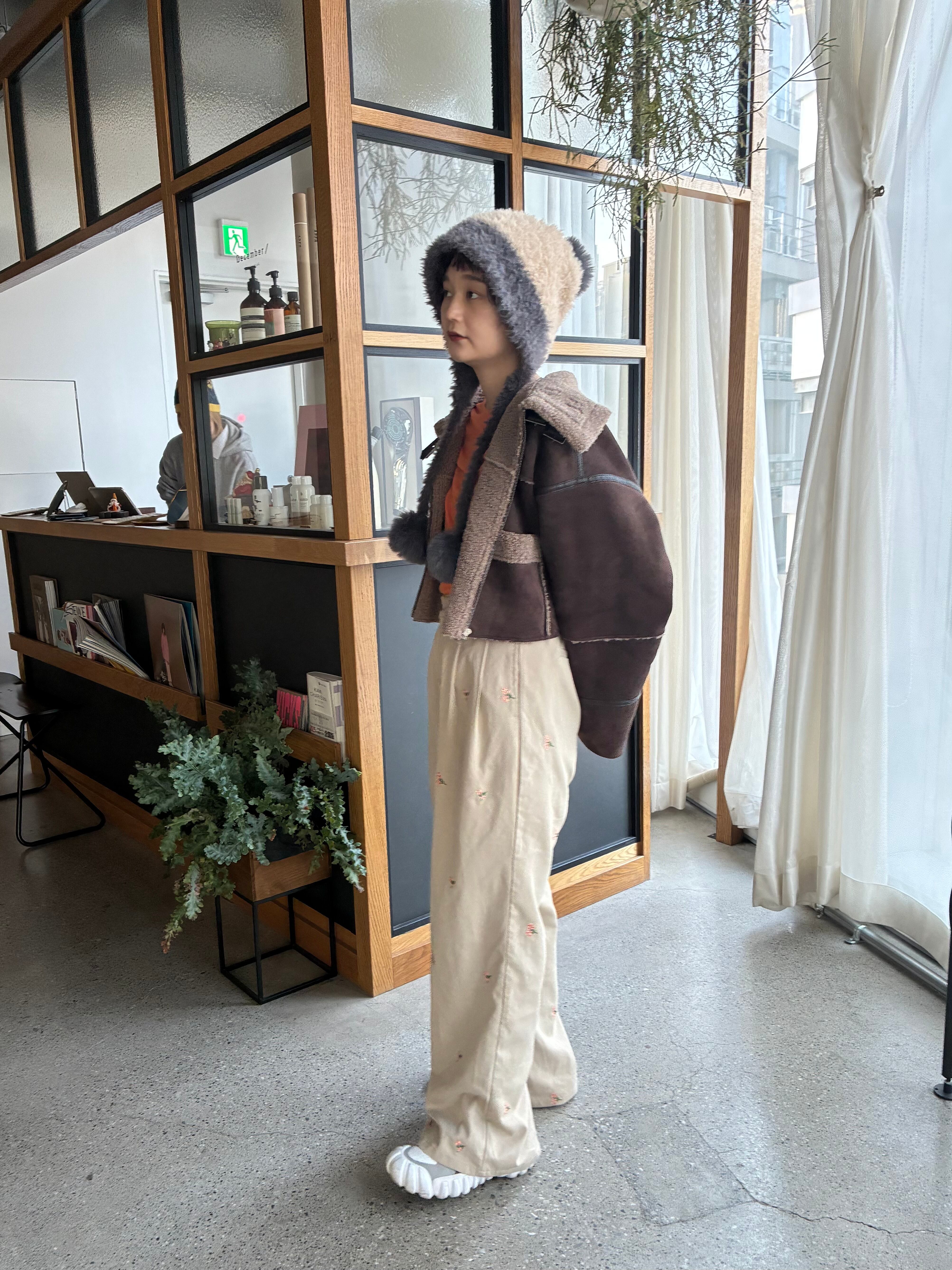 フラワー刺繍タックパンツ/ベージュ